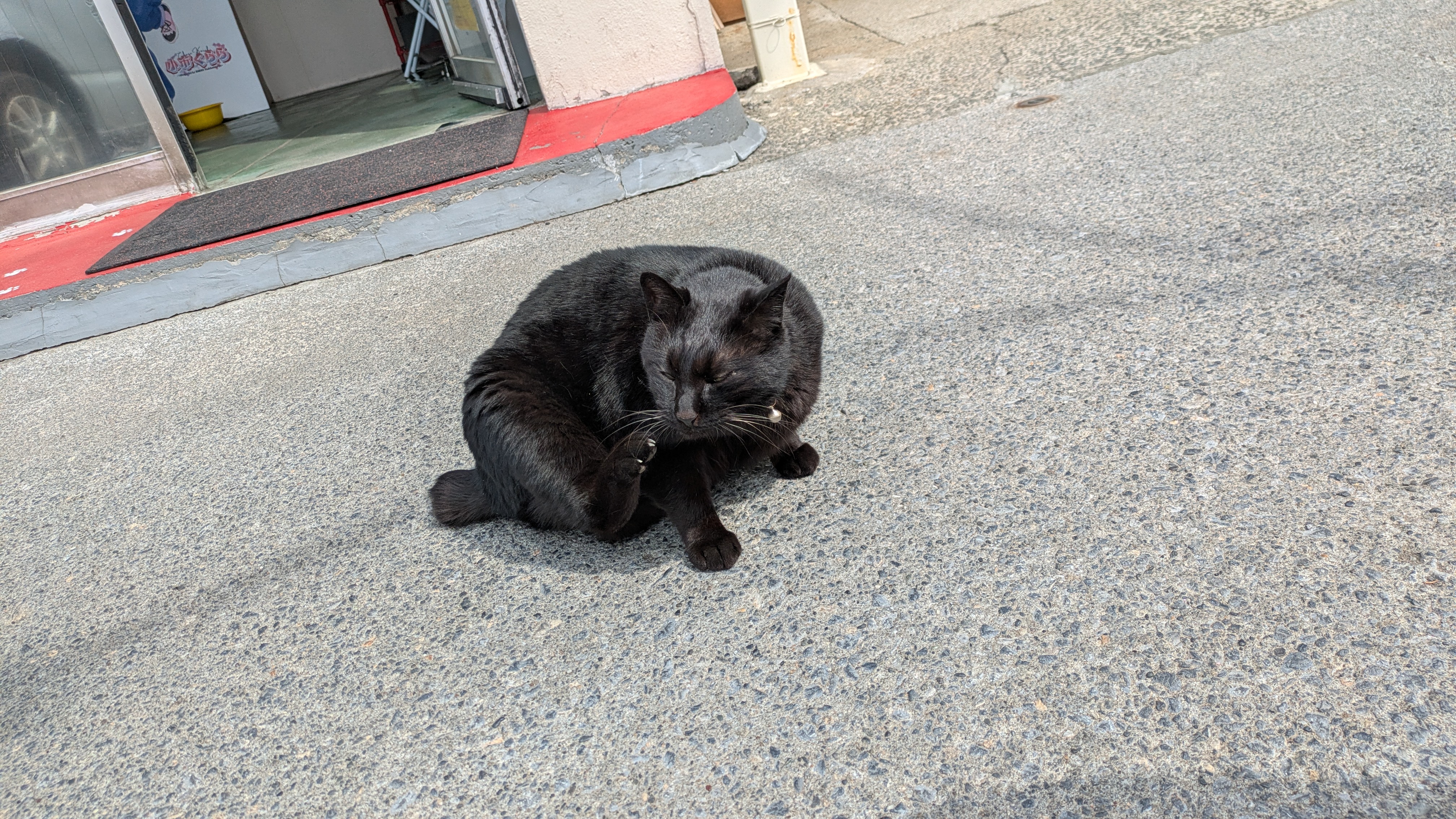 久々に生のにゃんこを間近で拝めました。人に慣れているようで、やや大人数で行ったにも関わらず、お腹を見せて毛づくろいをしておられました。