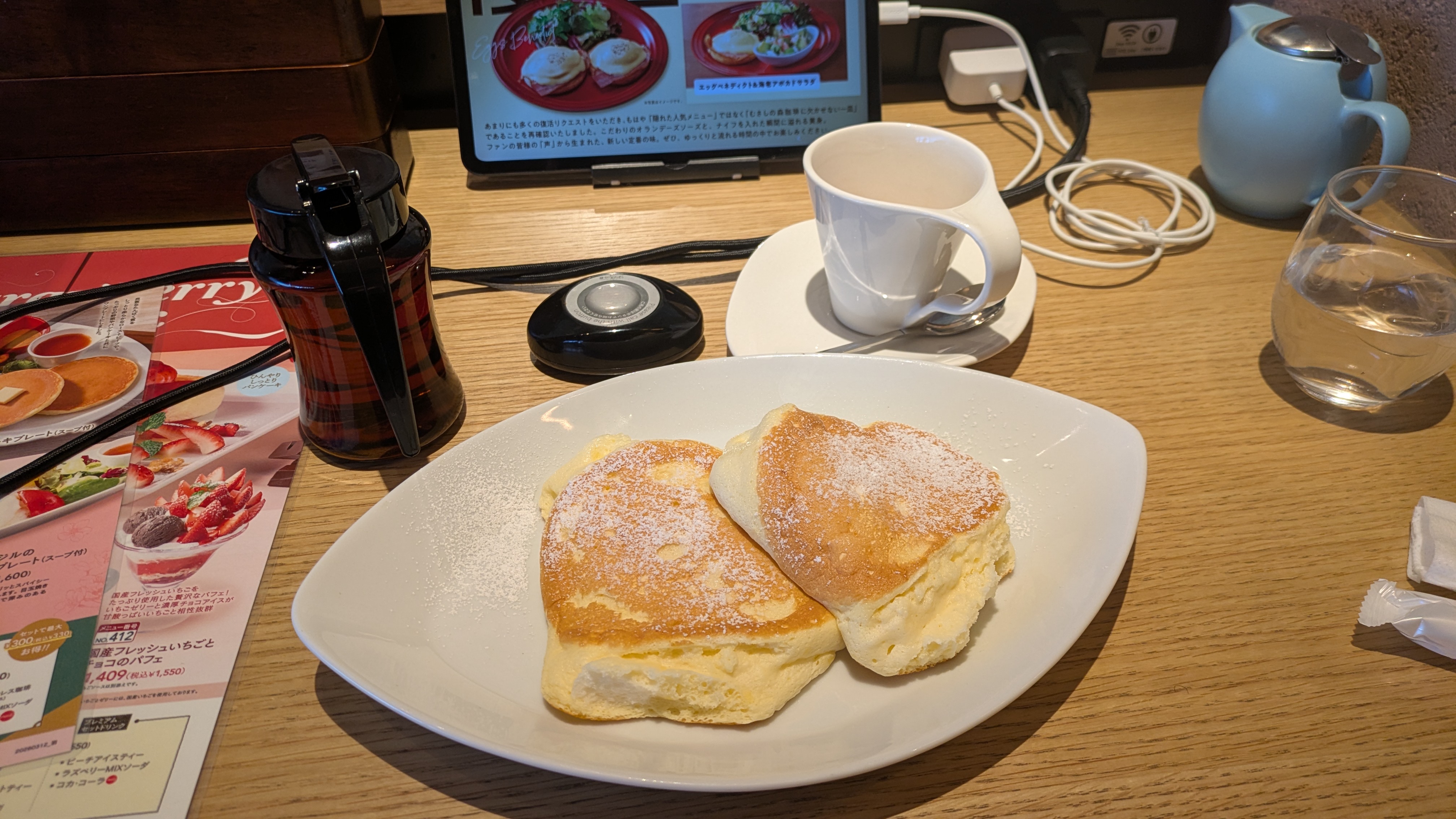 ↓羽田空港にあったむさしの森珈琲、パンケーキ美味、紅茶美味だったけど、よく考えれば同じようなものが六花亭で…